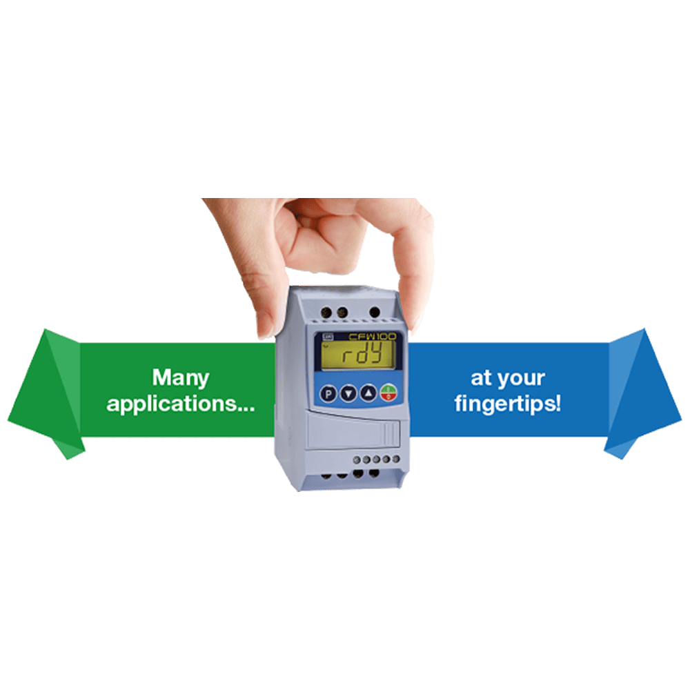 El más pequeño convertidor de frecuencia del mercado. La serie CFW100 abarca un rango de potencia desde 0,18 a 0,75 kW (0,25 a 1 HP).